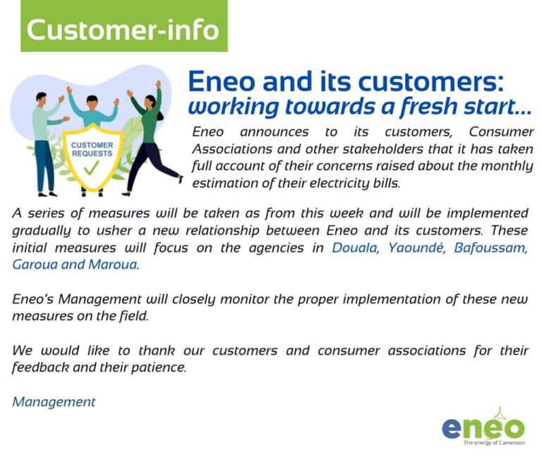 A New Beginning for Eneo and its Customers The management of Eneo Cameroon promises a new beginning to its customers and consumers. Today 7 July 2020, the management announced to its customers, Consumer Associations and other stakeholders that it has…